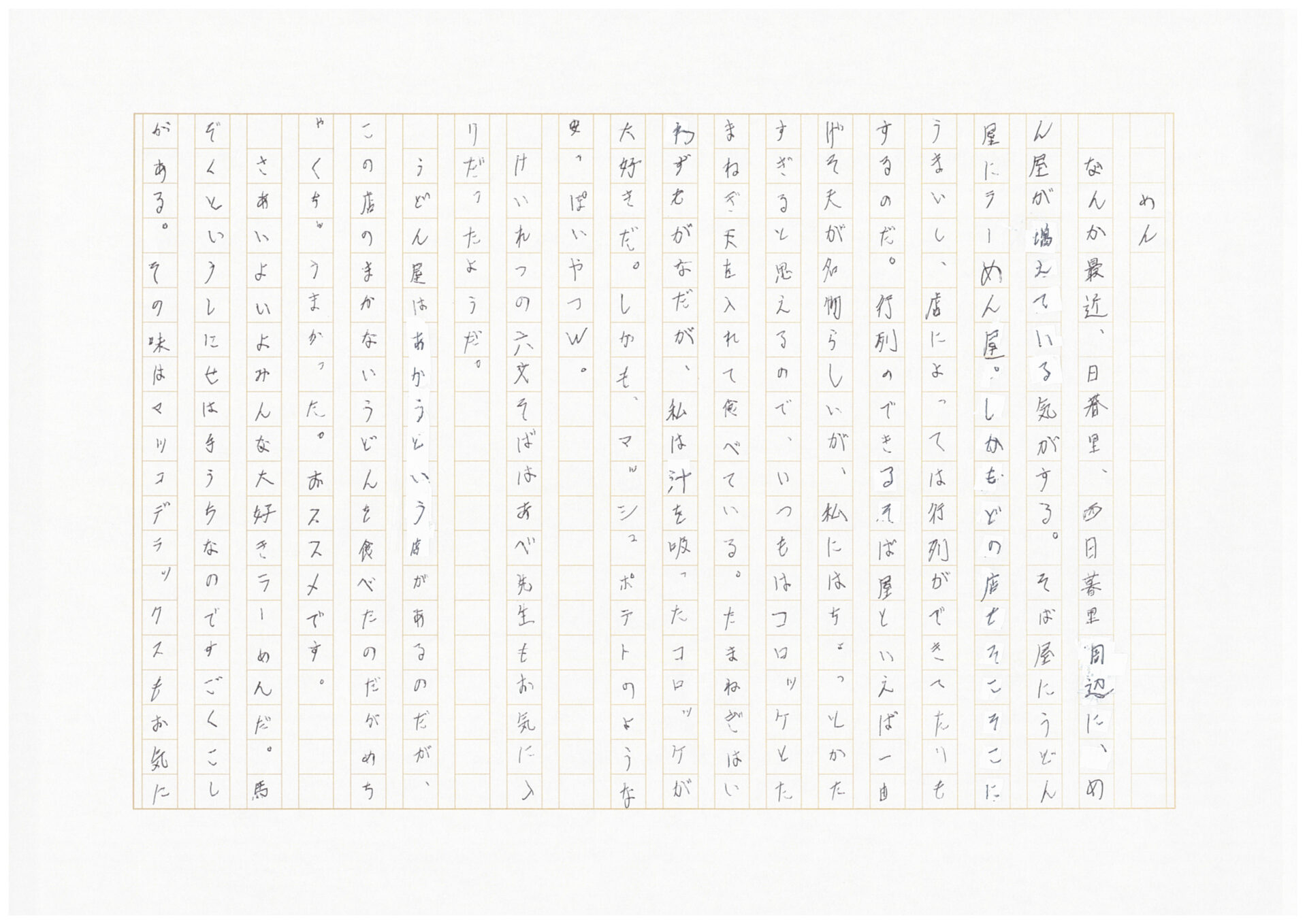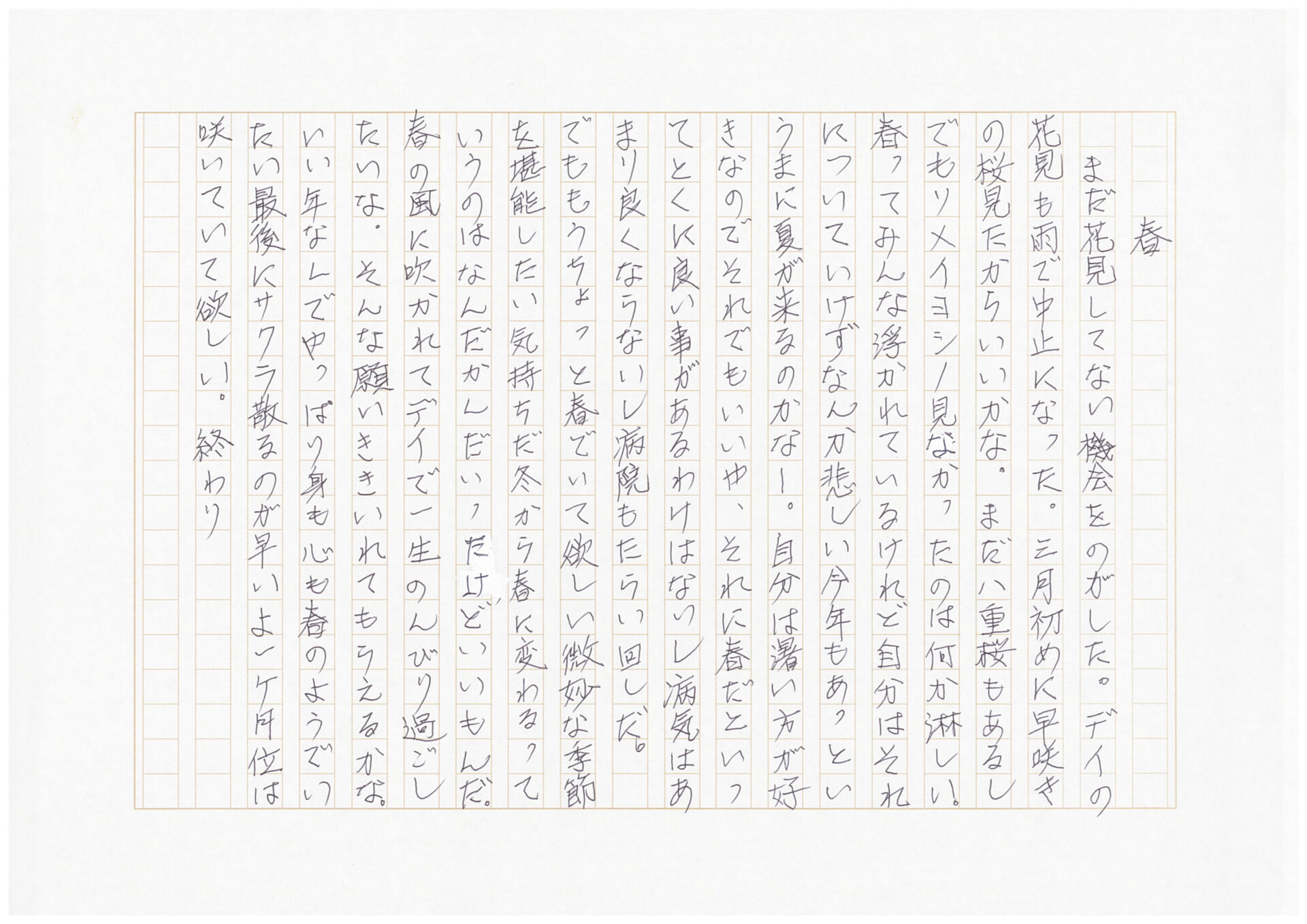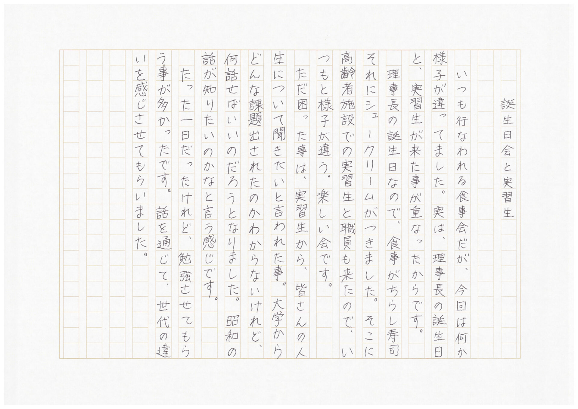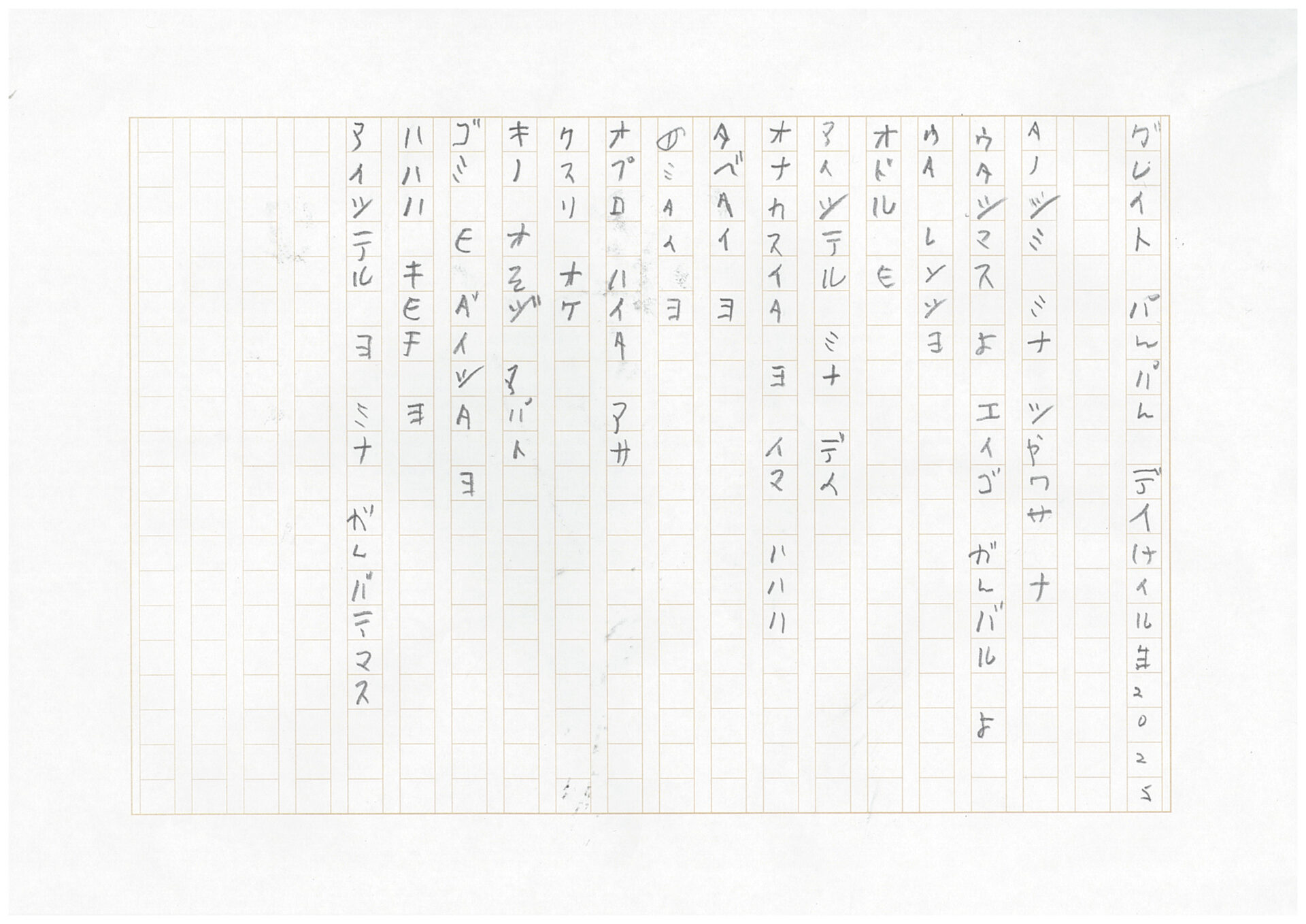 Home 2024年のページはこちら 書道部門 01 秋を感じて02 かみのとき03 BLACK BRAVE DOG04 ダブルスチール05 ずんだ生クリーム06 新風07 天真 ポエム部門 1 グレイト パンパン デイケイル 20252 秋のきらめき3-1 私の天敵13-2 私の天敵24-1 めん14-2 めん25 春6 フレンド7 誕生日会と実習生 塗り絵部門 01 真夏02 私の心と頭の中の色。03 Cute handsome MICKEY MOUSE04 ねこのニャータ05 プー06 ピカチュー07 海08 無我09 ステンドグラス10 懐かしの昭和の風景11 夢見ごこちのプー12 真夏の夕やけ13 戦後80年14 ドラえもん15 好きな食べ物16 牛車 コラージュ部門 01-1TIME is gold 101-2 TIME is gold 201-3 TIME is gold 302 夏の思い出03 ビクター04 IKI ツイン05 豆腐料理06 豚薔薇(バラ)と犬とビール07 今年の漢字誕生1995~202208 ケーキ・カクテル09 花と散歩道10 バラ11 表現12 街カフェ13 大好きを詰め込みました♡14 牛と豚と人と15 時は金なり アートアワー部門 01 Great spider house02 ネコのリース03 みかん星人04 レンコン05 丸の集合体(金色・黄色)06 枝葉の美しさ07 木の葉っぱ08 くもの巣09 どこでもドア10 囚われた混沌11 て12 四角と三角と丸13 今の私、どんな色14 蜘蛛15 レンコン16 れんこん17 ろてん風呂からの「グミ」18 シャボン玉19 心移りしない紫陽花 ビーズ部門 01 すみっコぐらし02 人生七転び八起きぜよ!03 ちいかわ04 六角型ビーズ05 ちいかわから「ハチワレ」06 コースター07 ハチワレ08 ブレスレット09 すみっこぐらし10 ハチワレ11 シェリーメイ12 ミャクミャク フラワーアレンジメント部門 01 華(クォーター)02 デイケア25周年を祝うアレンジメント03 右肩上がり!!04 25YEARS華祭り05 Romantic Flowers06 祝25周年07 ど真中08 25周年にむけて09 ゴージャス10 デイケア25周年を祝う11 グラタン12 永遠に13失敗のカーネーション14 よせうえ15 華やかなパーティー16 私の今の心きょうです。17 太陽の花束18 25周年アレンジ19 秋も華やかに…20 お花の小箱21華道一直線 手芸部門 01 巾着トートバッグ02 レトロきんちゃく03 ティッシュケース04 買物ぶくろ05 ステキなバック06 千鳥格子の手提げバック07 巾着付きトートバッグ08 黒ネコと白ネコの愛の構図09 1針1針、巾着つきトートバッグ10 きんちゃく11 ショコラテディ巾着トート 鉛筆画部門 01 柏もち02 柏もち03 柏もち04 たい焼き05 まんじゅう06 秋07 Honeymoon loves usagi08 十五夜09 はっぱの月10 この葉は食べれません11 黄身時雨12 葉っぱ難!13 柏もち14 お月見15 ミネオラ16 おはぎとHello Kitty17 桜もち18 美味しいくだもの19 かしわもち20 かしわもち21 びわ22 ジョニー大倉23 秋だ!和菓子だ!赤い彗星24 口開けたたいやき25 たいやき26 鉛筆画 パステル画部門 01 ピンクに染まった森02 AKI is LOVE03 秋の森04 秋の落葉05 六コの秋06 秋の森07 だるマル08 晩秋09 ミャクミャクの子供10 金色の小鳥11 カラフル・カタツムリ 工作部門 01 カレンダー02 クリスマスリース03 たい焼き風こいのぼり04 seed<種>05 手作りうちわ06 オリジナル感溢れるアンブレラマーカー07 クリアうちわ「東京MER」仕様08 春から夏へ…09 水玉のカゴ10 たっこで~す!11 今日もキラキラだぁ12 レインマーカー スクラッチアート部門 01 夏02 百花03 富士山04 模様05 こうごうしい大仏06 夏の音色07 ひまわり08 Pretty Snow white girl09 キキララ10 ブーケ11 空とぶシンデレラ?12 バラ ノ トケイ13 未来都市14 キズもの Tシャツ部門 01 人魚 リトルマーメイド02 電車でGO 走ろう山手線03 大谷選手の愛犬デコピン04 ダノンデサイル05-1 星座Tシャツa05-2 星座Tシャツb06 Tシャツ07-1 ハローキティ &a07-2 ハローキティ &b08 リボンパーツとフリフリのさくらんぼの付け襟が映える『スミ』色Tシャツ09-1 芸術の秋a09-2 芸術の秋b10 当選すきやき11 筋斗雲12 みゃくみゃく アロマ部門 01 The・子供ビール02 愛と光の共演03 フラワーキャンドル04 キャンドル05 ゼラニウムキャンドル06 かまくら07 焼きおにぎり08 ボタニカルキャンドル09 クリスマスの思い出10 グリン キャンドル11 Charming Candle12 ポマンダー13 星に願いを…みんな幸せになーれ 趣味部門 01 my great doctor TETSUO ABE02 マチ付きトートバッグ03 にんじんに足が…?04 ごごのテータイム(クッキー)05 秋のよなが06 マスクフック07 光08 平和09 流行りのマクラメを編んでみました!!10 くいしん坊のゴン太くん11 スイートミモザ12 特大巾着袋13 クリスマスツリー14 S.L.15 隅田川花火16 ひまわり17 療養中にて18 記憶の中のドラえもん19-1 雲のすき間a19-2 雲のすき間b20 平和な一日 羊毛フェルト部門 01 小雪ちゃん02 クリームつまったマカロンクリップ03 コウペンちゃんの夏休み04 美味しい秋の味覚05 秋のリース06 大人の秋の夜に07 何にみえるかな08 人魂オバケのハロウィーン09 秋の食べ物10 ハロウィン11 ハッピーハロウィン12 フアマミート13 秋の豊物14 ハロウィン15 梅干し大すきスッパマン パズル 0102 アディクション 0102030405 ヤンググループ 碧空 Woodの会